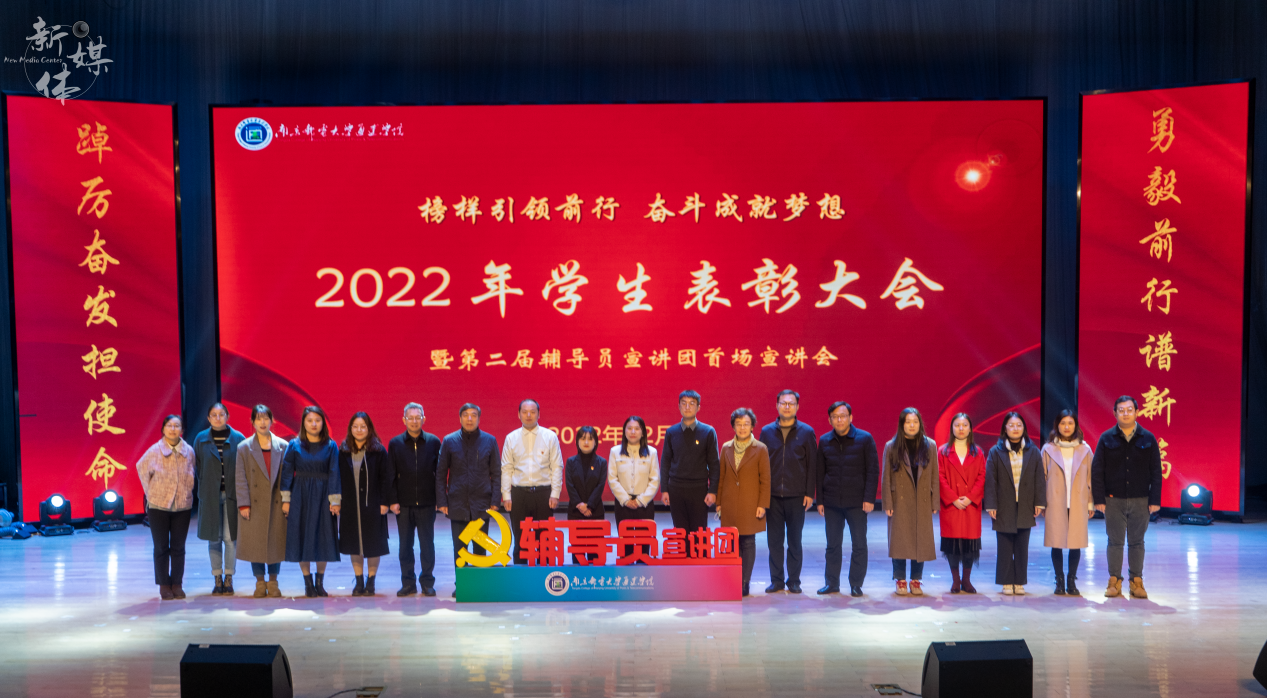 12月7日下午,“榜样引领前行 奋斗成就梦想”2022年学生表彰大会暨第二届辅导员宣讲团首场宣讲会在大学生活动中心礼堂举行。学院院长王国平、党委书记朱清、常务副院长赵洪牛、副院长倪可、纪委书记张建波、党委副书记兼副院长王楷以及各部门主要负责人、全体辅导员、优秀学生代表、2020-2022级主要学生干部等出席了本次活动。