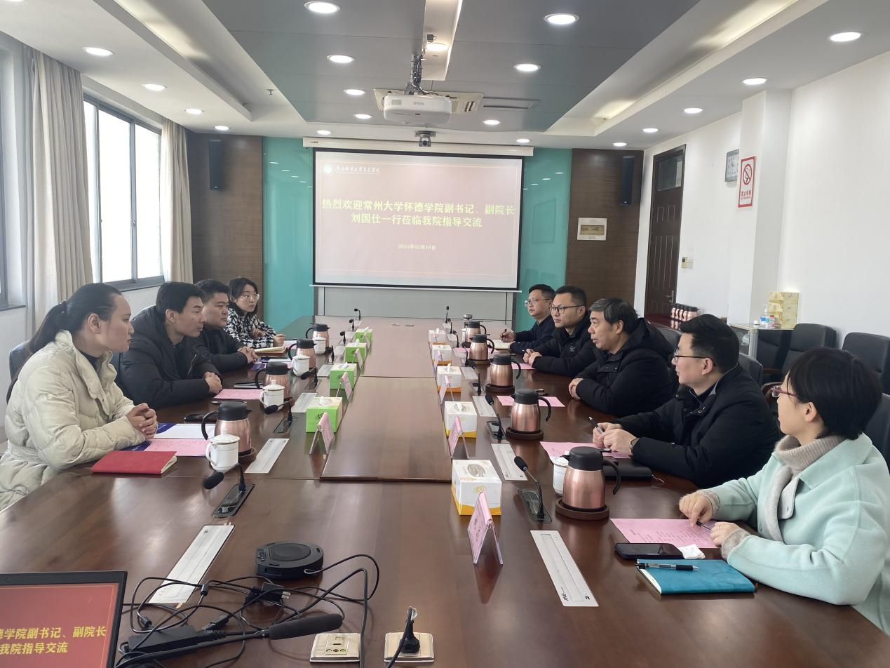 2月16日上午,常州大学怀德学院党委副书记、副院长刘国仕一行4人来必赢官网就学生教育管理等工作进行调研交流。必赢官网院长王国平,党委副书记、副院长王楷,招就处、教务处、学生工作处等相关部门负责人参加了调研交流会。