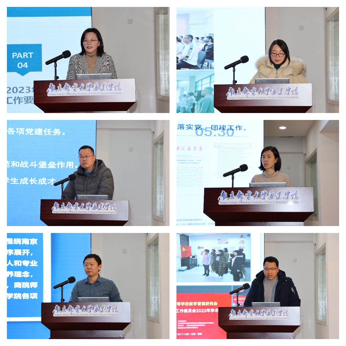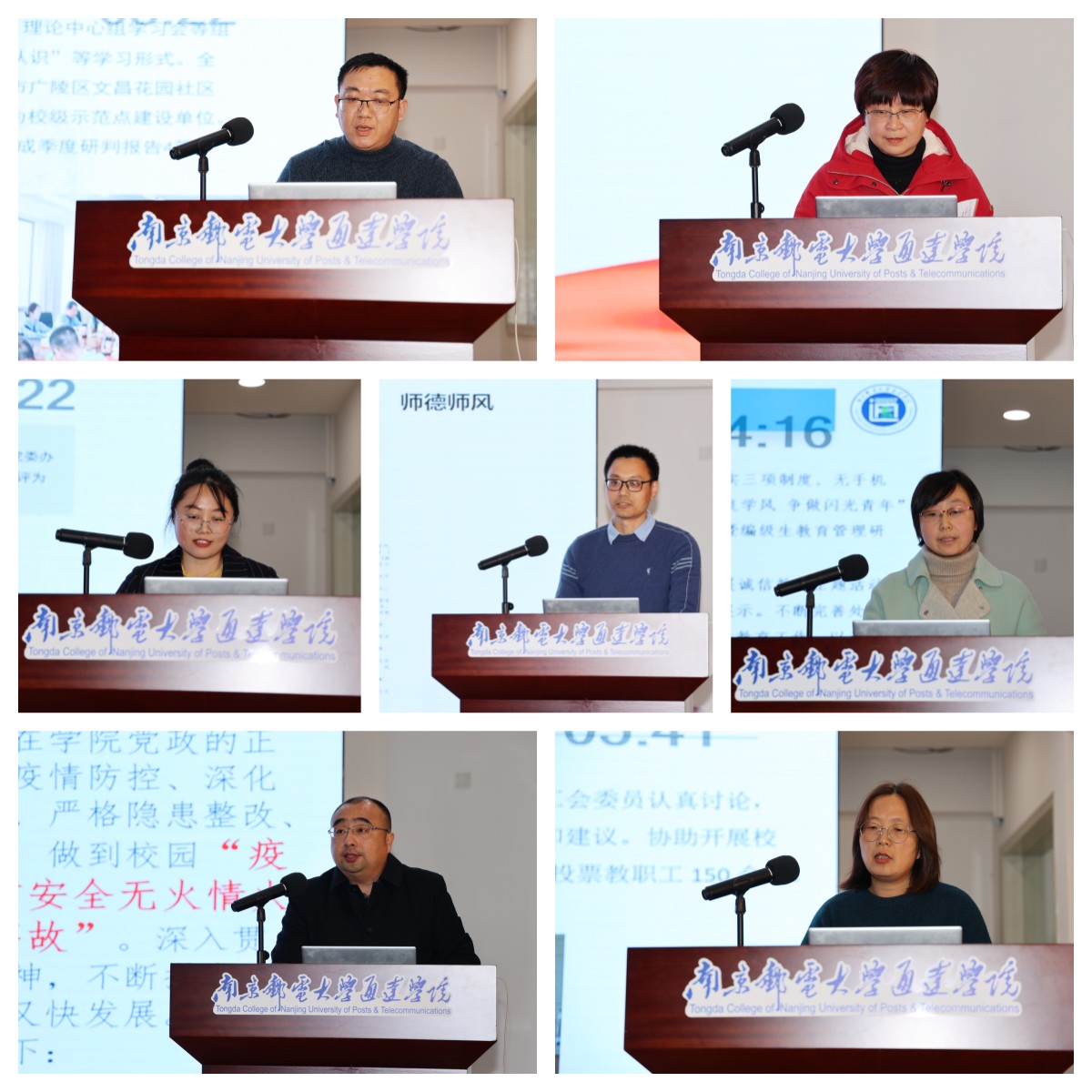 各职能部门和教学单位主要负责人进行述职汇报。与会人员认真聆听汇报,仔细阅读2022年度各部门(单位)年终总结暨中层干部个人述职汇编,并测评打分。