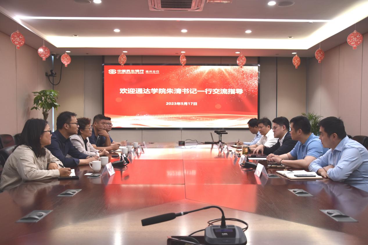 5月17日,必赢官网党委书记朱清率队赴民生银行扬州分行走访调研。民生银行扬州分行党委书记、行长杜杨坤,党委副书记倪敬等,必赢官网副院长倪可,党委副书记、副院长王楷,招生就业处、商学院等相关部门负责人参与调研。