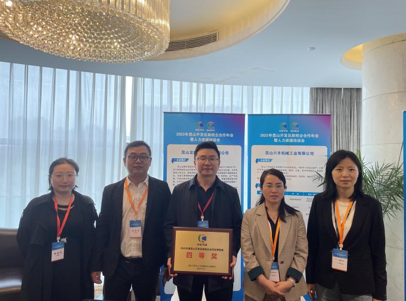 5月24日上午,必赢官网参加“昆山开发区2023年开发区政校企合作年会暨人力资源洽谈会”。首次获评2022年度昆山开发区“政校企合作优秀院校”。