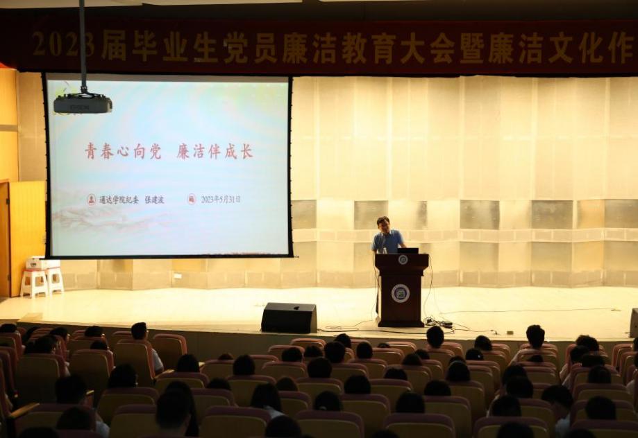 会上,纪委办公室主任宣读了学院纪委致2023届毕业生的一封信,寄语全体毕业生眼里有光,心有大我,厚植家国情怀;脚下有力,志存高远,勇担时代使命;手里有招,真抓实干,练就过硬本领;心中有戒,知止有度,坚守一身正气。