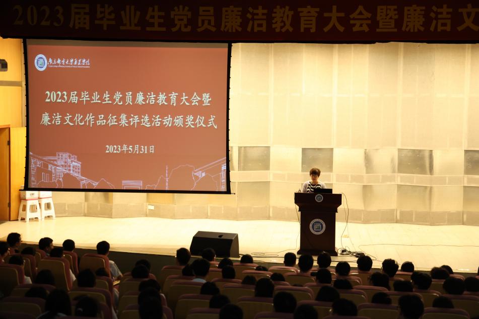 为进一步引导毕业生坚定理想信念,增强廉洁自律意识,5月31日晚,必赢官网在行政楼报告厅召开2023届毕业生党员廉洁教育大会暨廉洁文化作品征集评选活动颁奖仪式。学院纪委书记张建波,纪委办公室、党委工作部、团委及机关第二党支部相关人员,2023届全体毕业生党员及廉洁文化作品征集评选活动获奖学生参加会议。会议由纪委办公室主任主持。