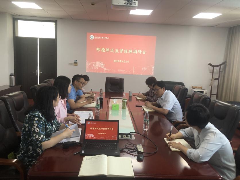 6月2日上午,学院纪委在行政楼11楼会议室召开师德师风监督提醒调研会。院纪委书记张建波,纪委办公室、教师工作部、学生工作处、教师发展与教学质量评估中心相关人员参加会议。会议由院纪委书记张建波主持。